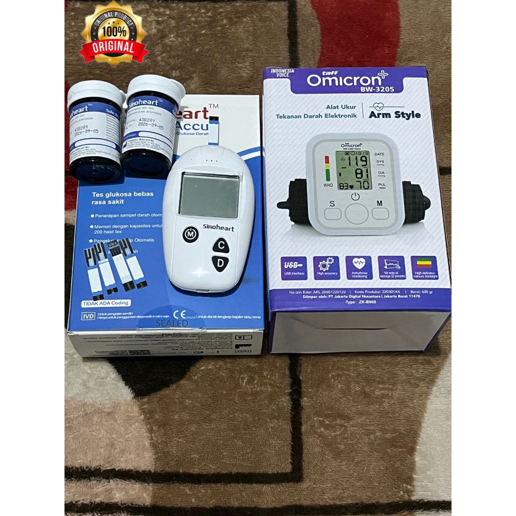 PAKET ALAT CEK KESEHATAN TENSIMETER Pengukur Tekanan Darah & ALAT CEK GULA DARAH