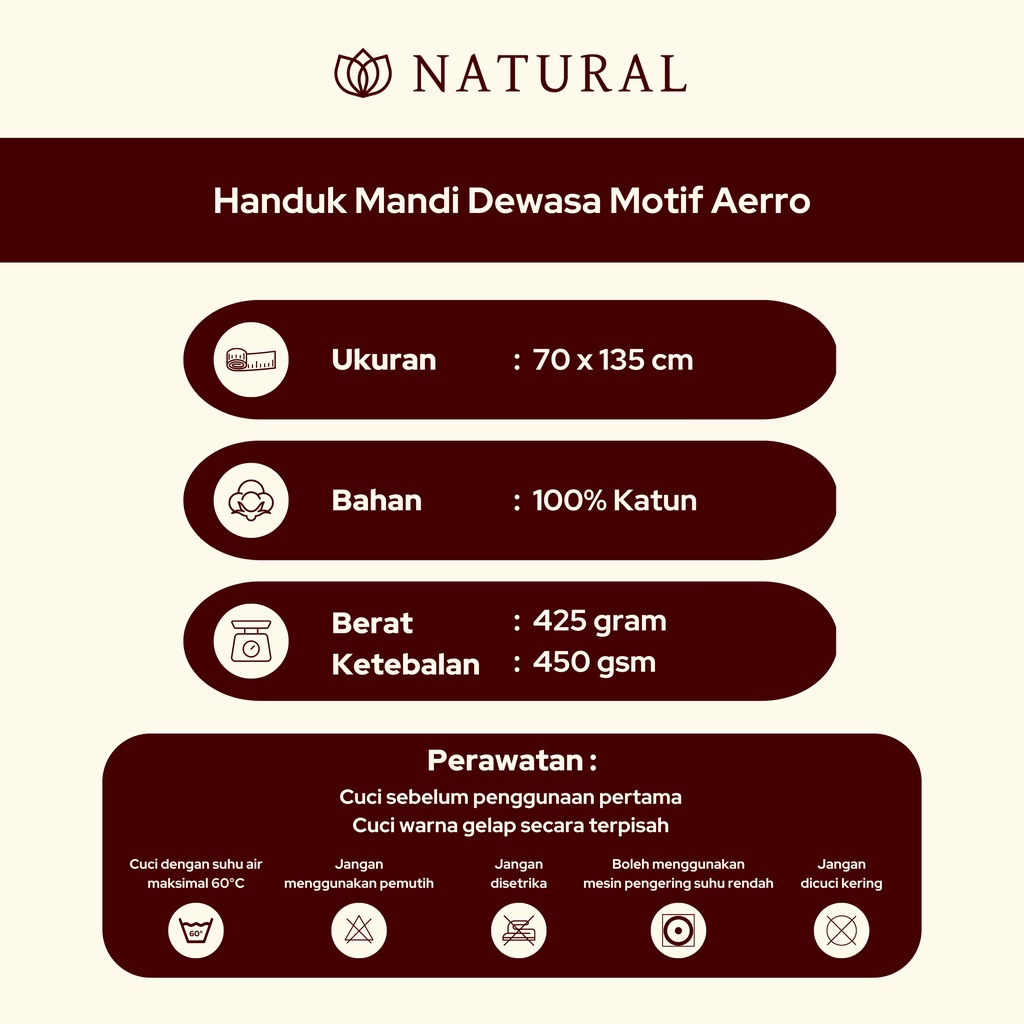 Handuk Mandi Natural by Chalmer 70 x 135 cm Motif Aerro Handuk Mandi Dewasa Ukuran Besar