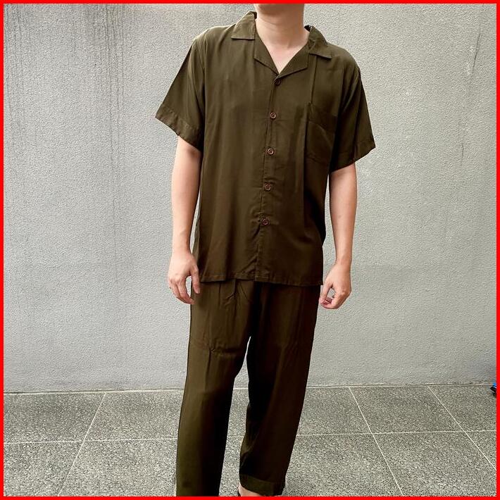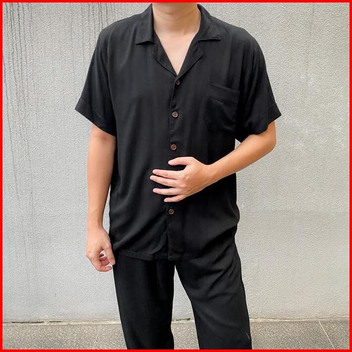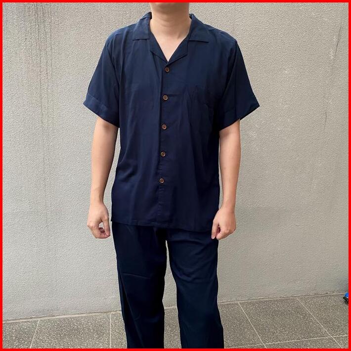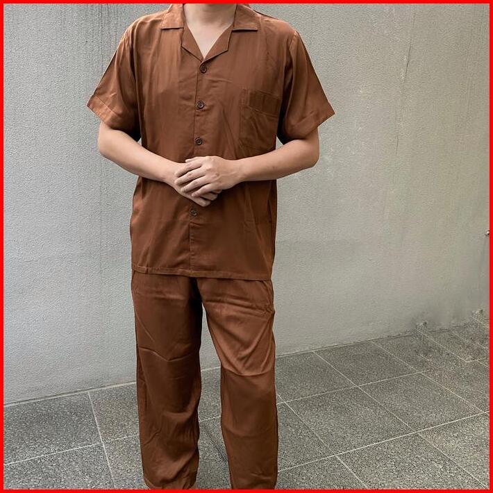 Setelan Pria Kemeja Polos Piyama Polos Pria Baju Tidur Pria Rayon