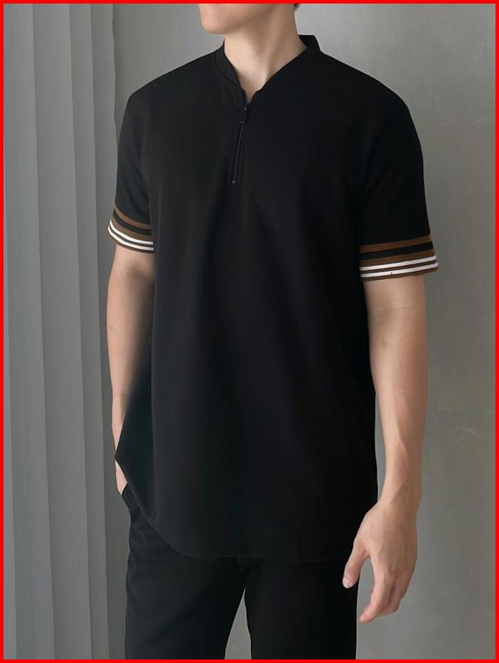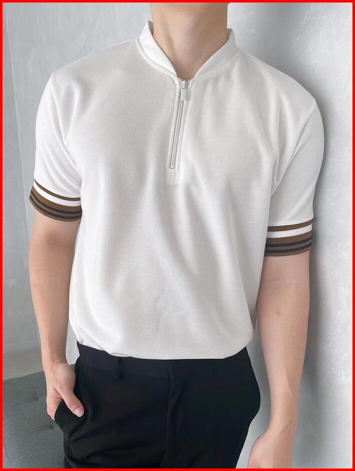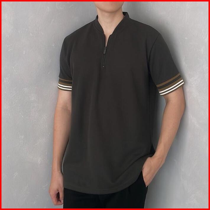 Kadaka Mt-0171 Zipper Polo Shirt Stripes Detail Kerah Shanghai Pria Polos