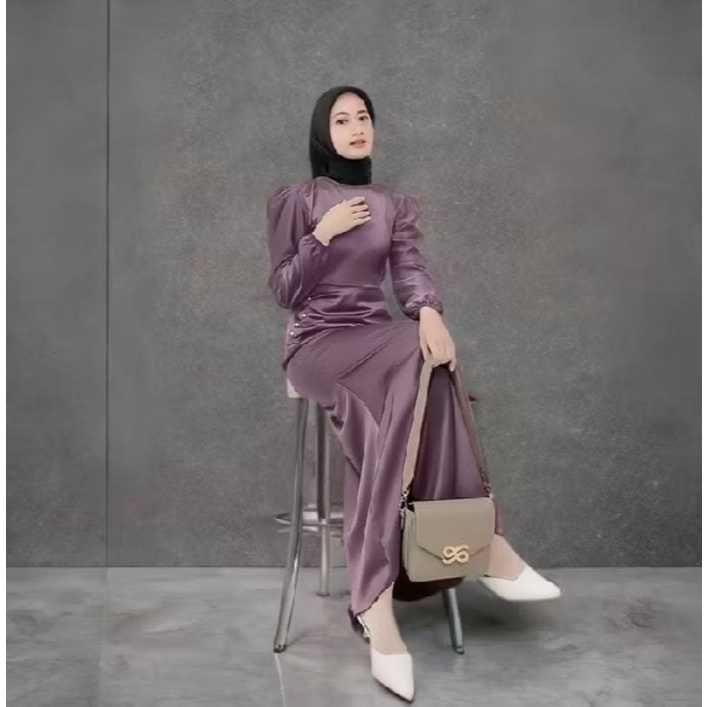 elora dress satin silk premium baju fashion wanita kondangan wisuda couple muslimah gamis terbaru