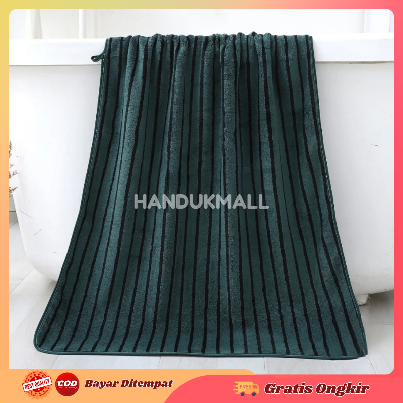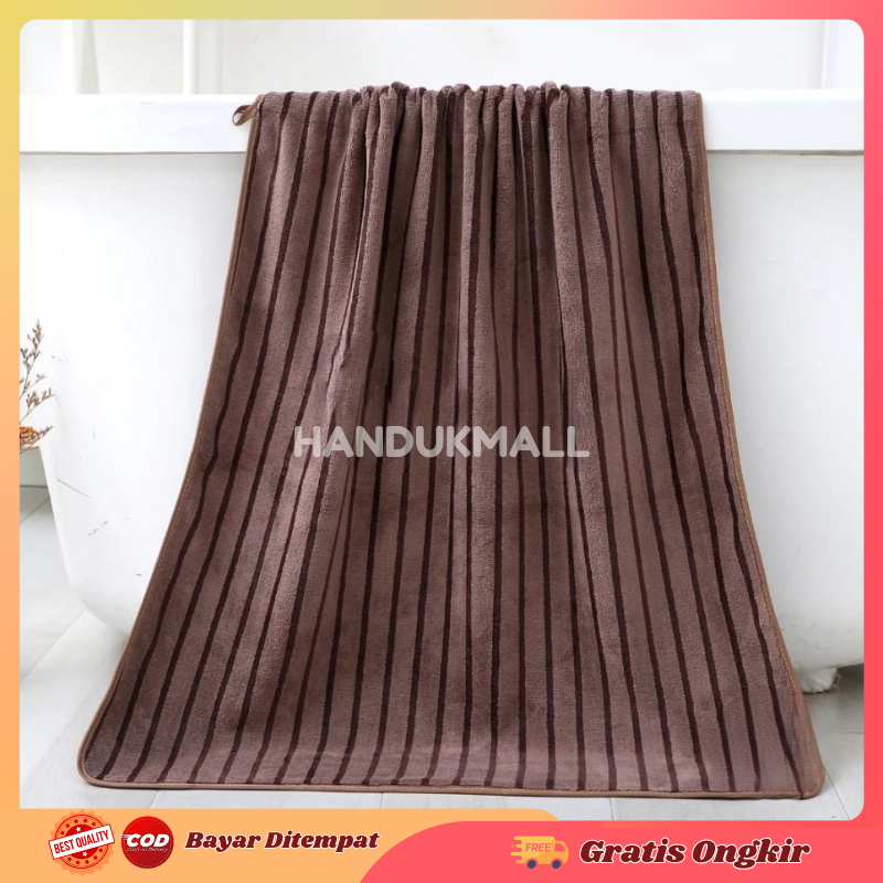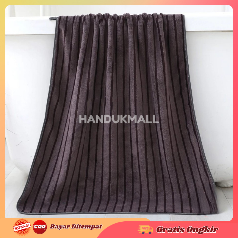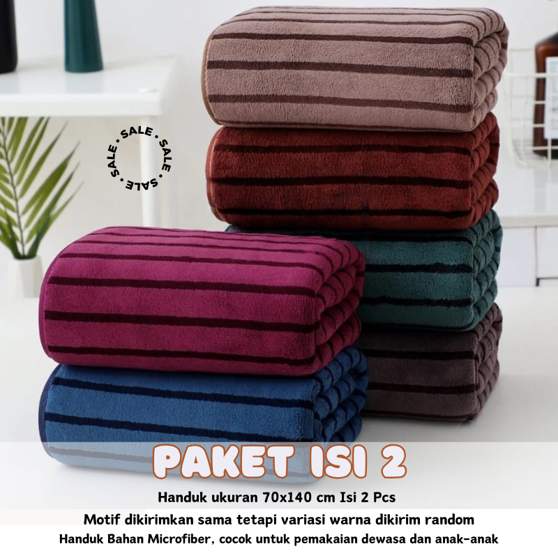 PR0MO (2 PCS) Handuk Mandi Dewasa UK 70X140cm Microfiber Lembut Salur - Cocok untuk Souvenir/THR