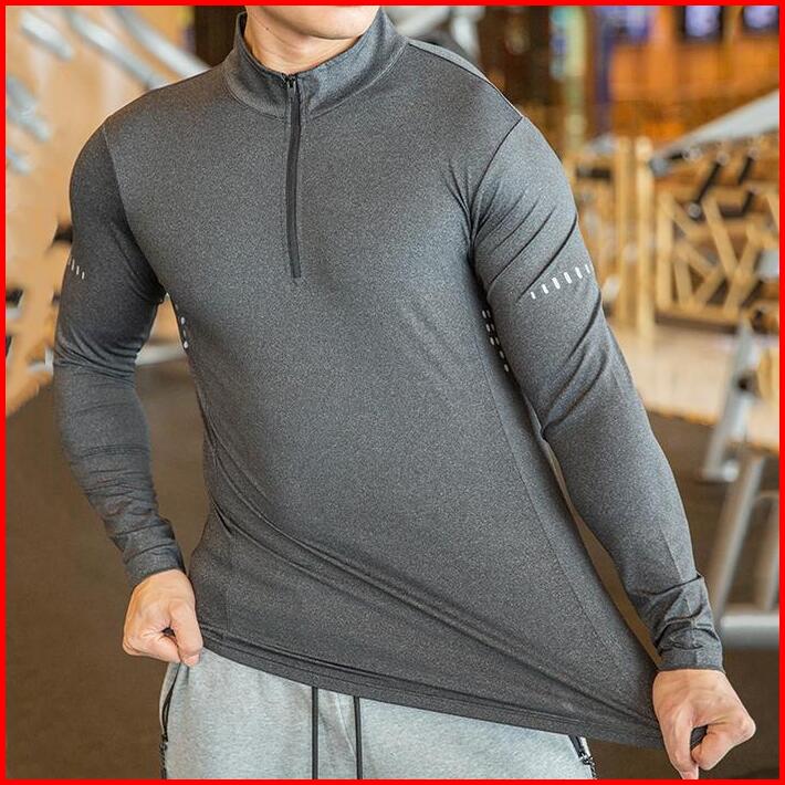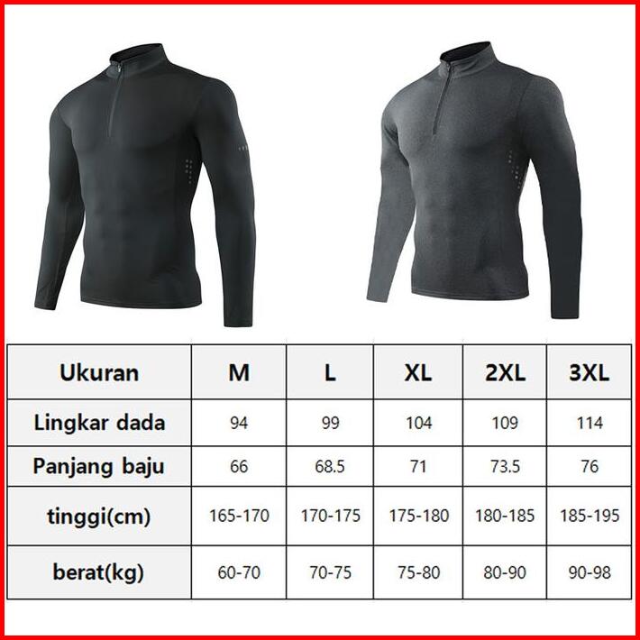 Kamb Kaos Olahraga Pria Lengan Panjang Hitam Baju Pakaian Sport