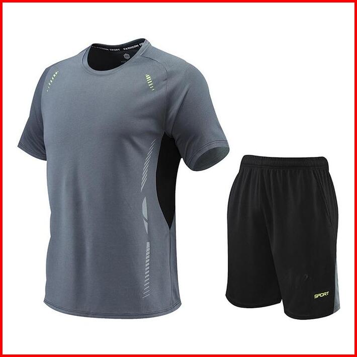 Kamb Kaos Pria Set 2 Bagian Olahraga Yang Menyerap Keringat Dan Cepat Kering Olahraga Pakaian Sport