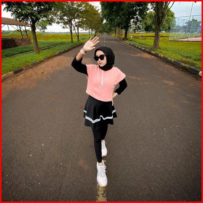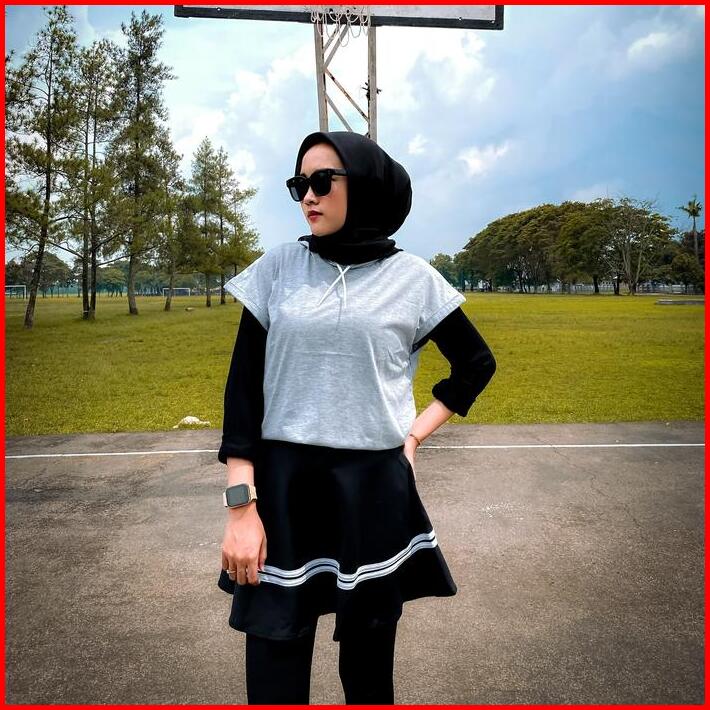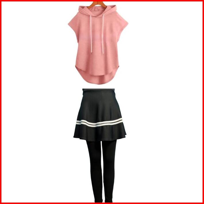 Setelan Olahraga Wanita Rok Legging Outer Hoodie Tanpa Lengan