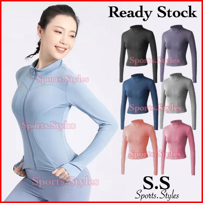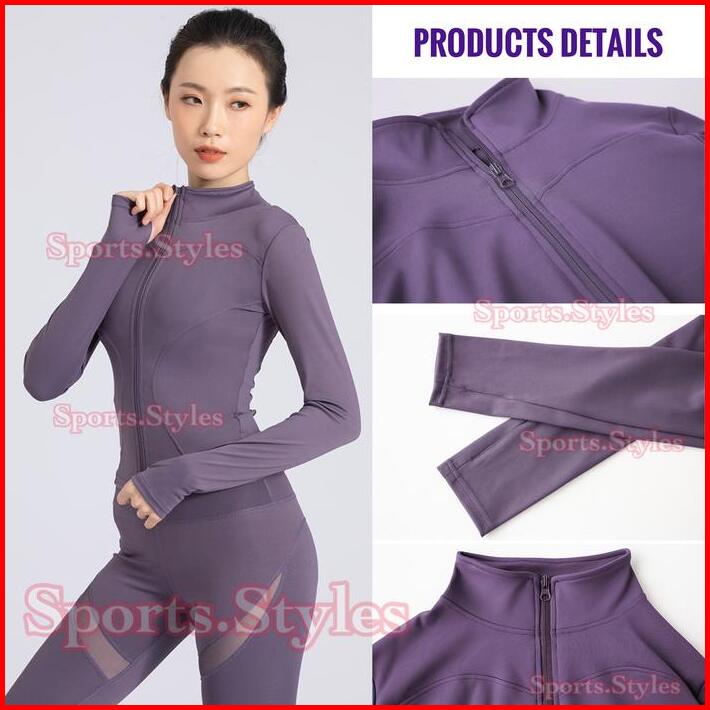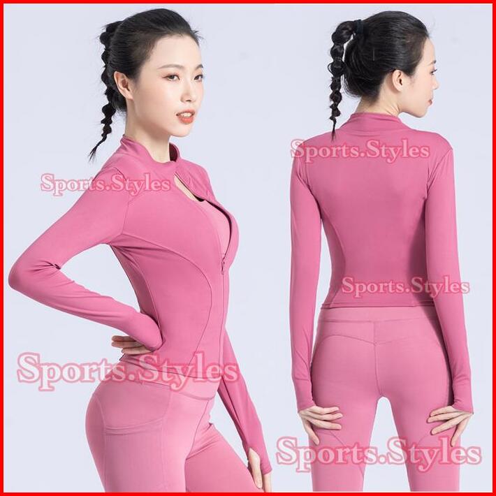 Jaket Wanita Lengan Panjang Polos Cepat Kering Dengan Resleting Yoga