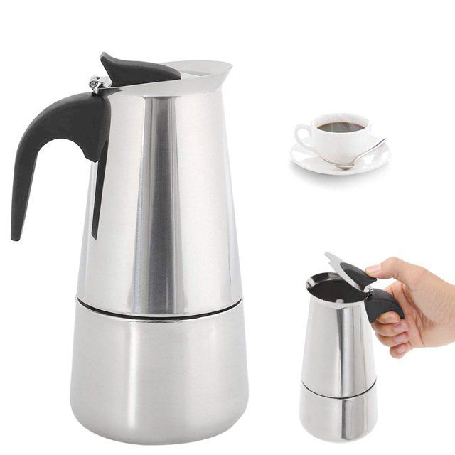 PROMO One Two Cups Moka Pot Espresso Coffee Maker Stovetop 200ml 4 Cup - Z21 - Silver igedh