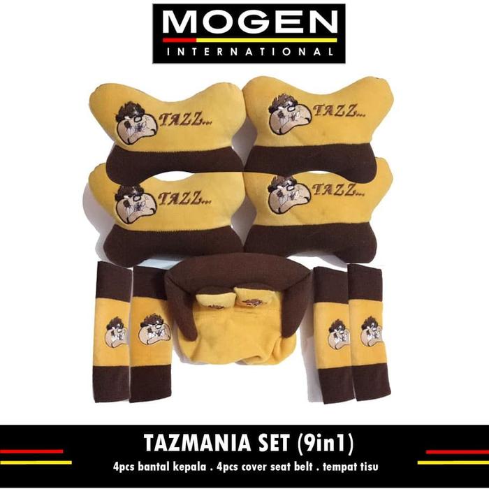 Car Set Bantal Mobil TAZMANIA / Bantal Jok Mobil dan Tempat Tisu