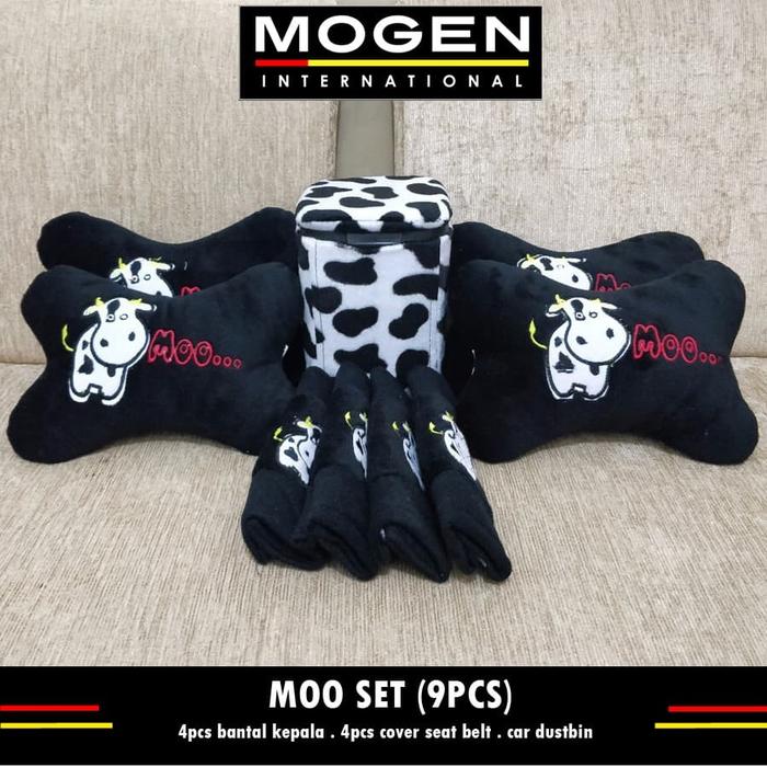 Car Set Bantal Mobil MOO SAPI / Bantal Jok Mobil dan Tempat Sampah