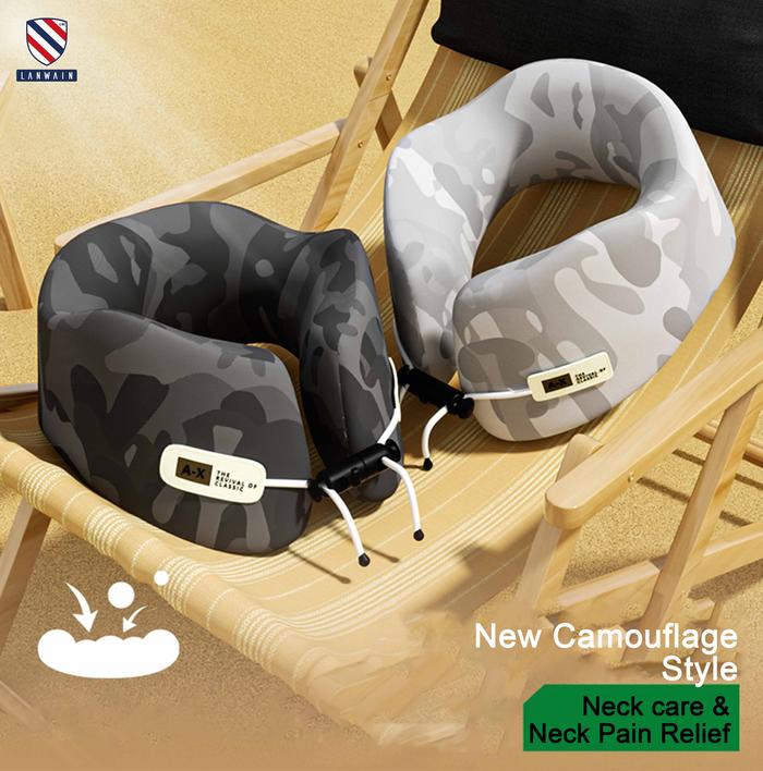 Lanwain Travel Pillow Army100% Pure Memory Foam Neck Pillow, Comfortable&Breathable Cover, Machine Washable, Travel Kit