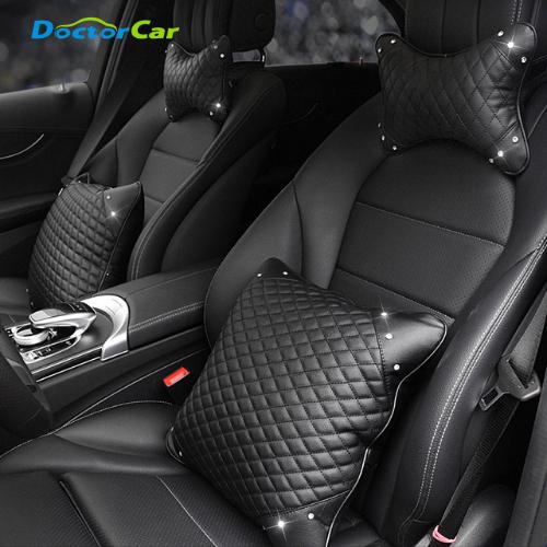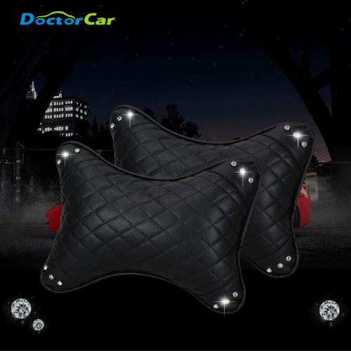 2 Pcs Bantal Leher Mobil Polos Berlian Kulit Premium