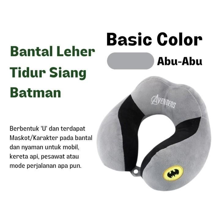 Bantal Leher Tidur Siang Abu-Abu Batman Travel Portabel Neck Pillow