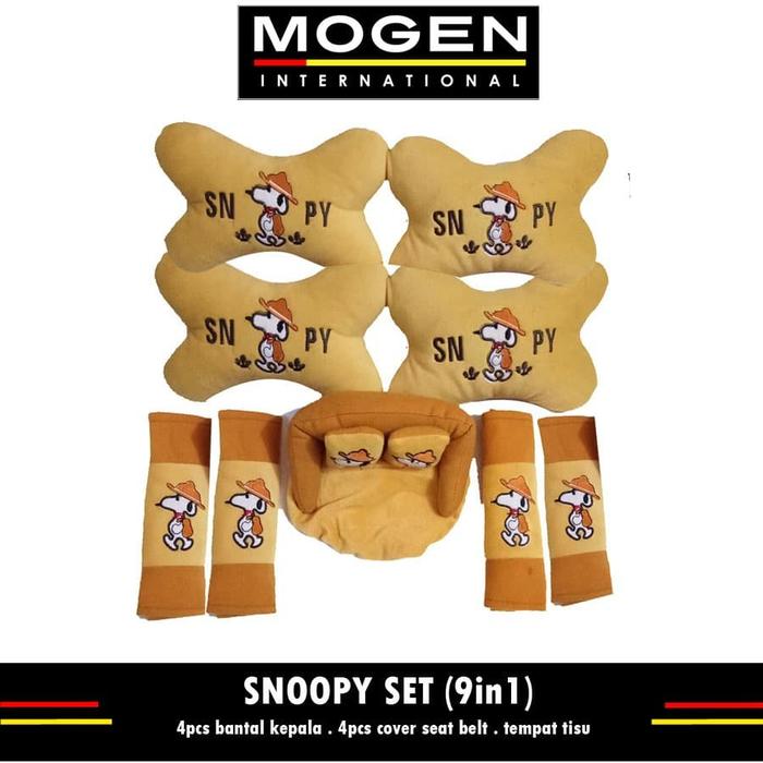 Car Set Bantal Mobil SNOOPY / Bantal Jok Mobil dan Tempat Tisu