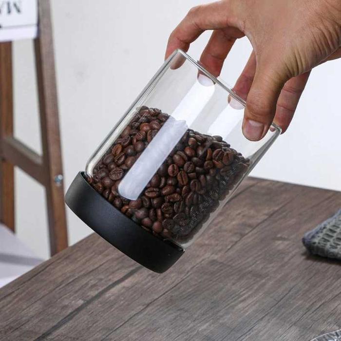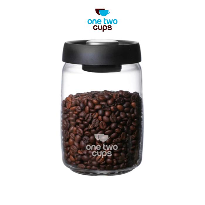 One Two Cups Toples Kaca Biji Kopi Coffee Beans Vacuum Sealed Lid - SE41 - Hitam - 1200ML
