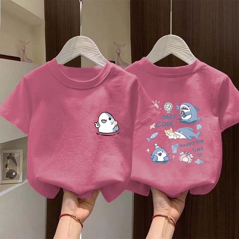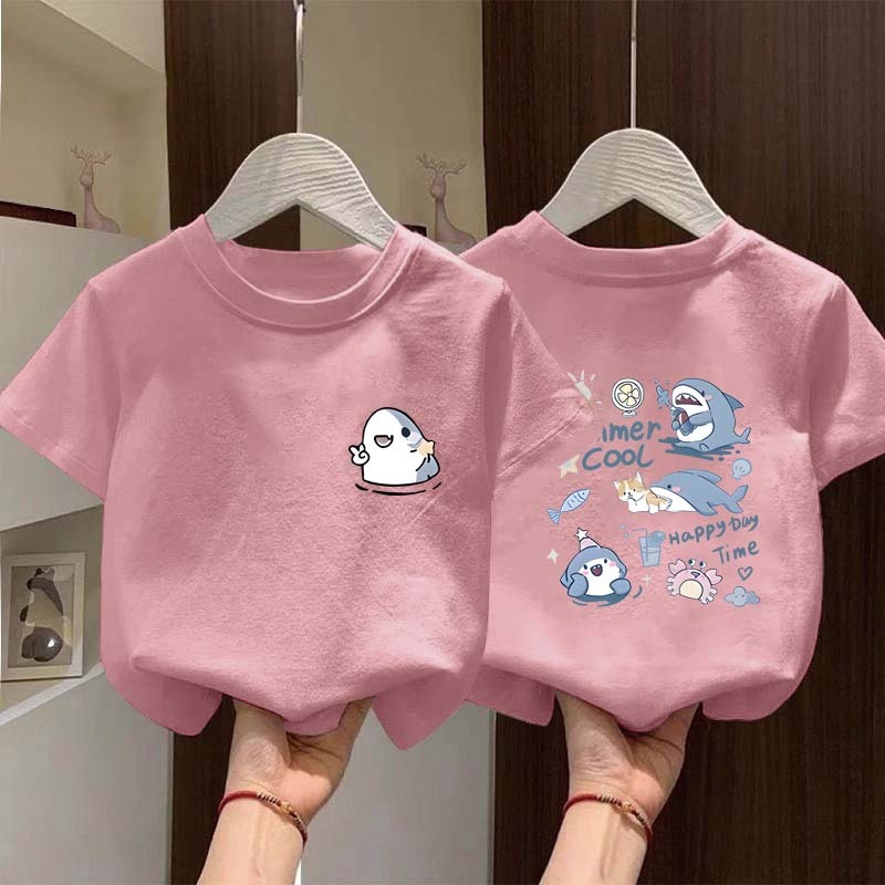 JiOJiO Pola cetak hiu kecil kartun lucu trendi gaya Korea pakaian anak baju anak perempuan baju anak laki laki baju anak