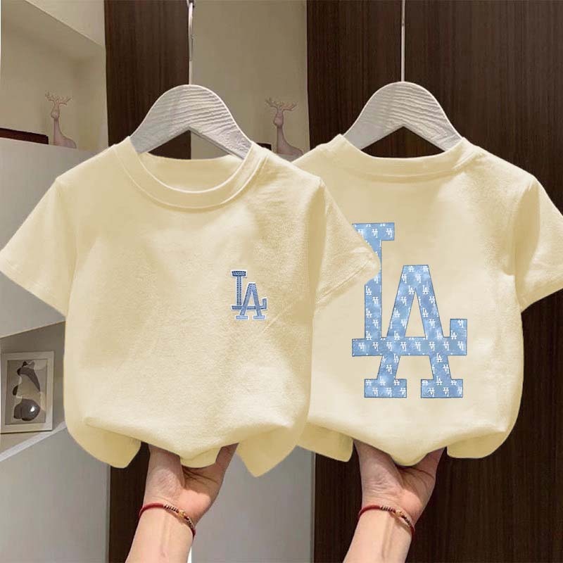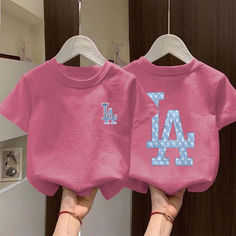 JiOJiO Desain busana gaya Korea huruf LA cetak pakaian anak baju anak perempuan baju anak laki laki baju anak cewek impo