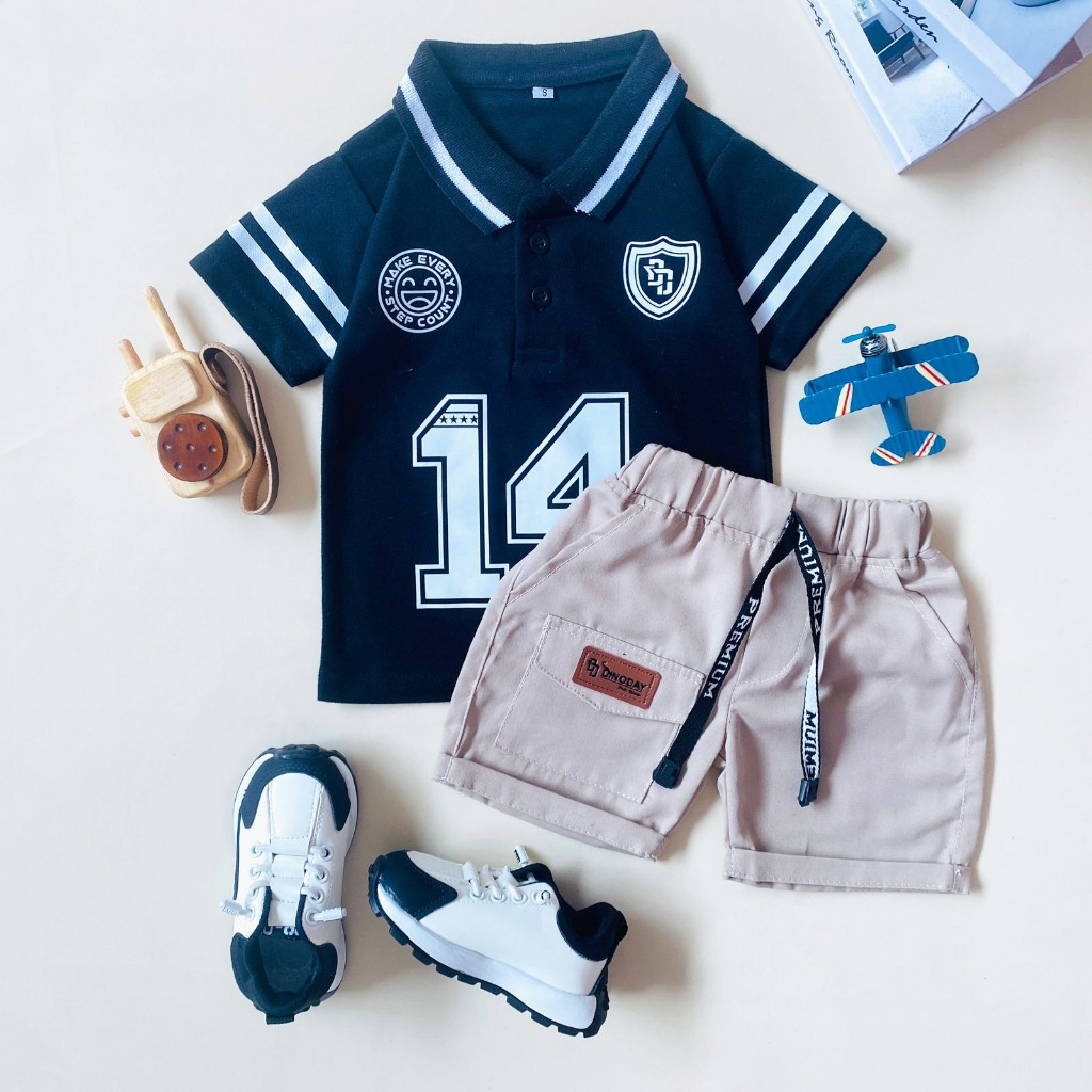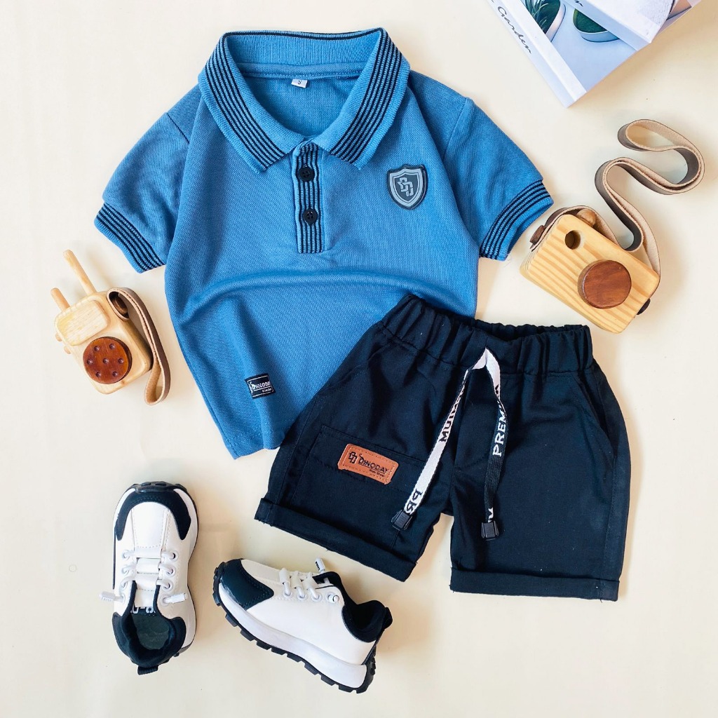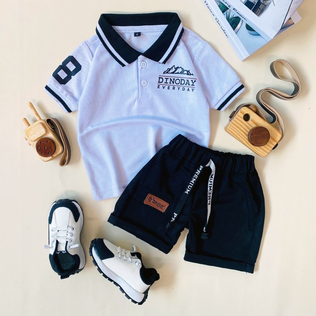 ESTISHOP X DINODAY Setelan Anak Cowok Baju Wangki Kerah Celana Hotpants Saku 1-9 Tahun