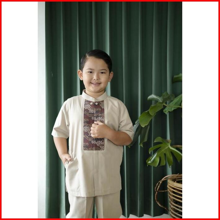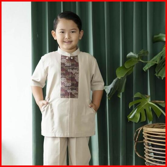 Bastoh Baju Koko Anak Bordir Nakata Cream One Set