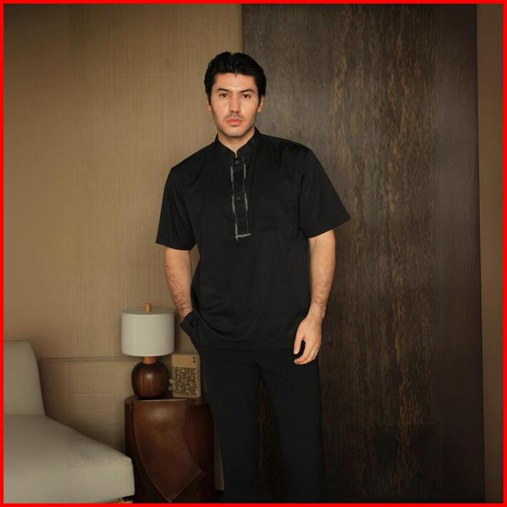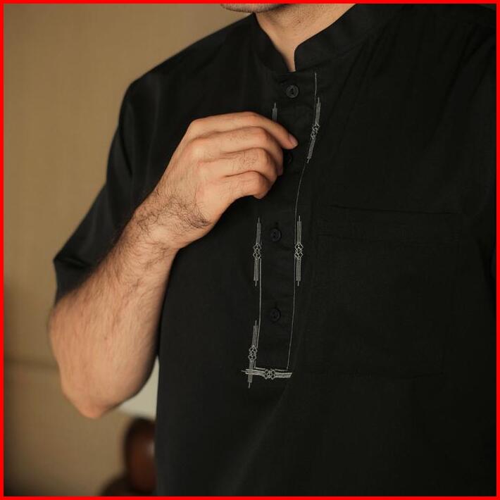 Bastoh Yumna Baju Koko Pria Dewasa Bordir Grey Lengan Pendek