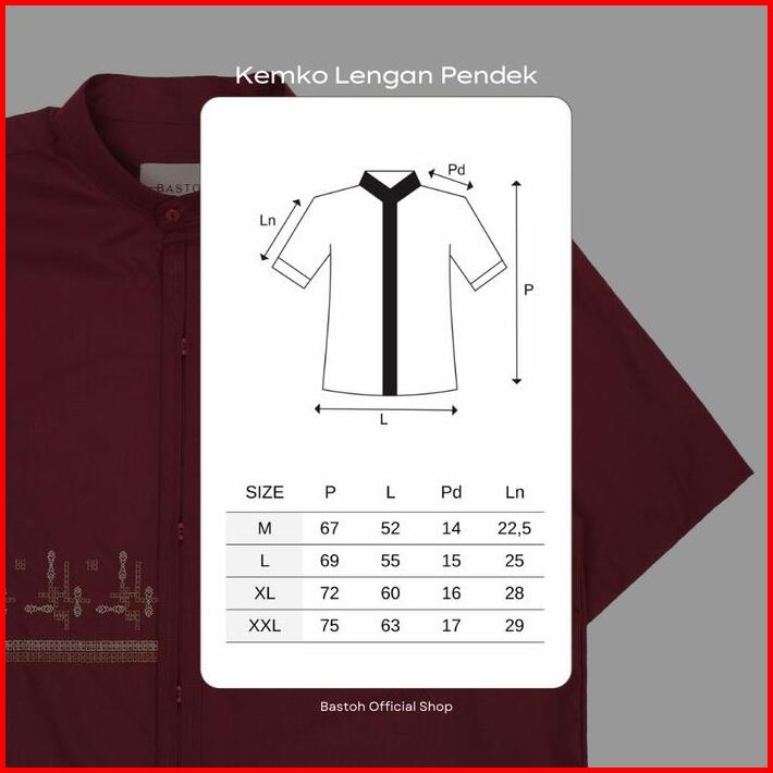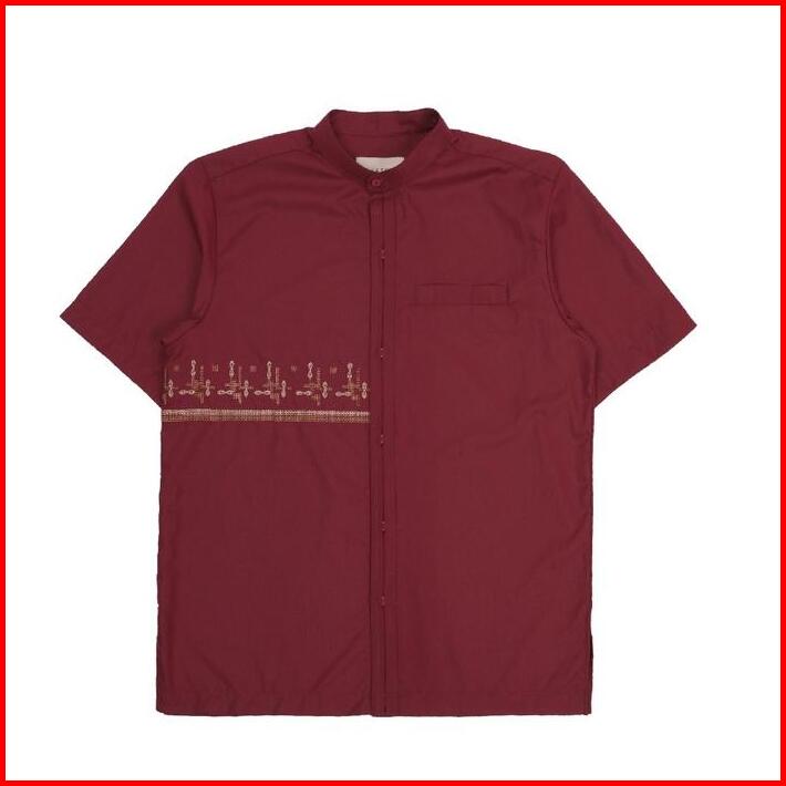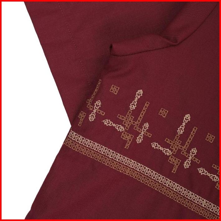 Bastoh Qolbu Koko Pria Bordir Dewasa Lengan Pendek Warna Burgundy