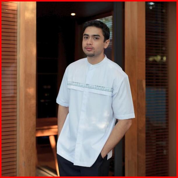 Bastoh Zayyan Koko Bordir Pria Dewasa Lengan Pendek Warna Putih
