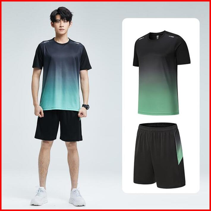 Kamb Desain Asli Set 2 Bagian Unisex Setelan Kaos Olahraga Futsal T Shirt Running Elastisitas Tinggi Menyerap Keringat D