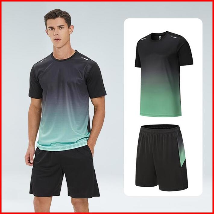 Kamb 2pcs Warna Gradien Setelan Kaos Olahraga Pria Nyaman Bernapas Menyerap Keringat Dan Cepat Kering Sport