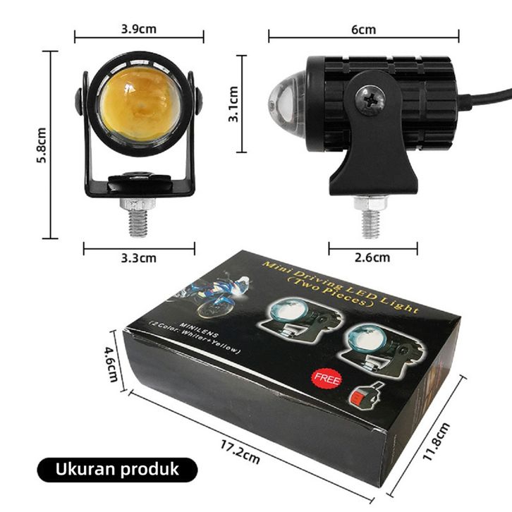 Acroder Lampu Tembak Motor Mini Laser Led 2 PCS Hi Lo 2 Warna Super Terang Aluminium