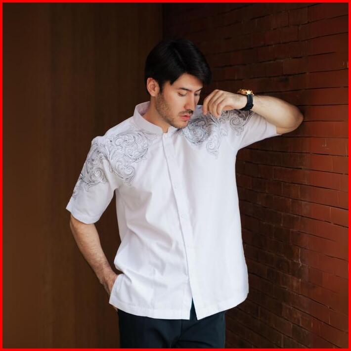Bastoh Baju Koko Bordir Nazeef Lengan Pendek Putih