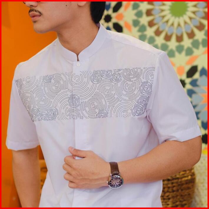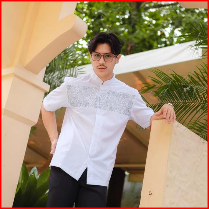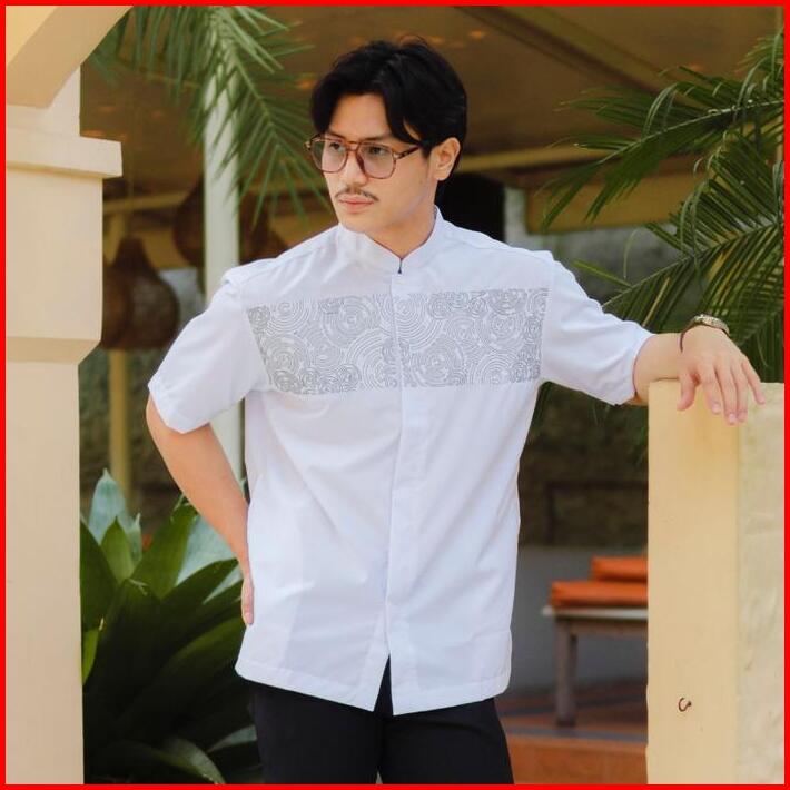 Bastoh Kemeja Koko Bordir Pria Ordu Putih