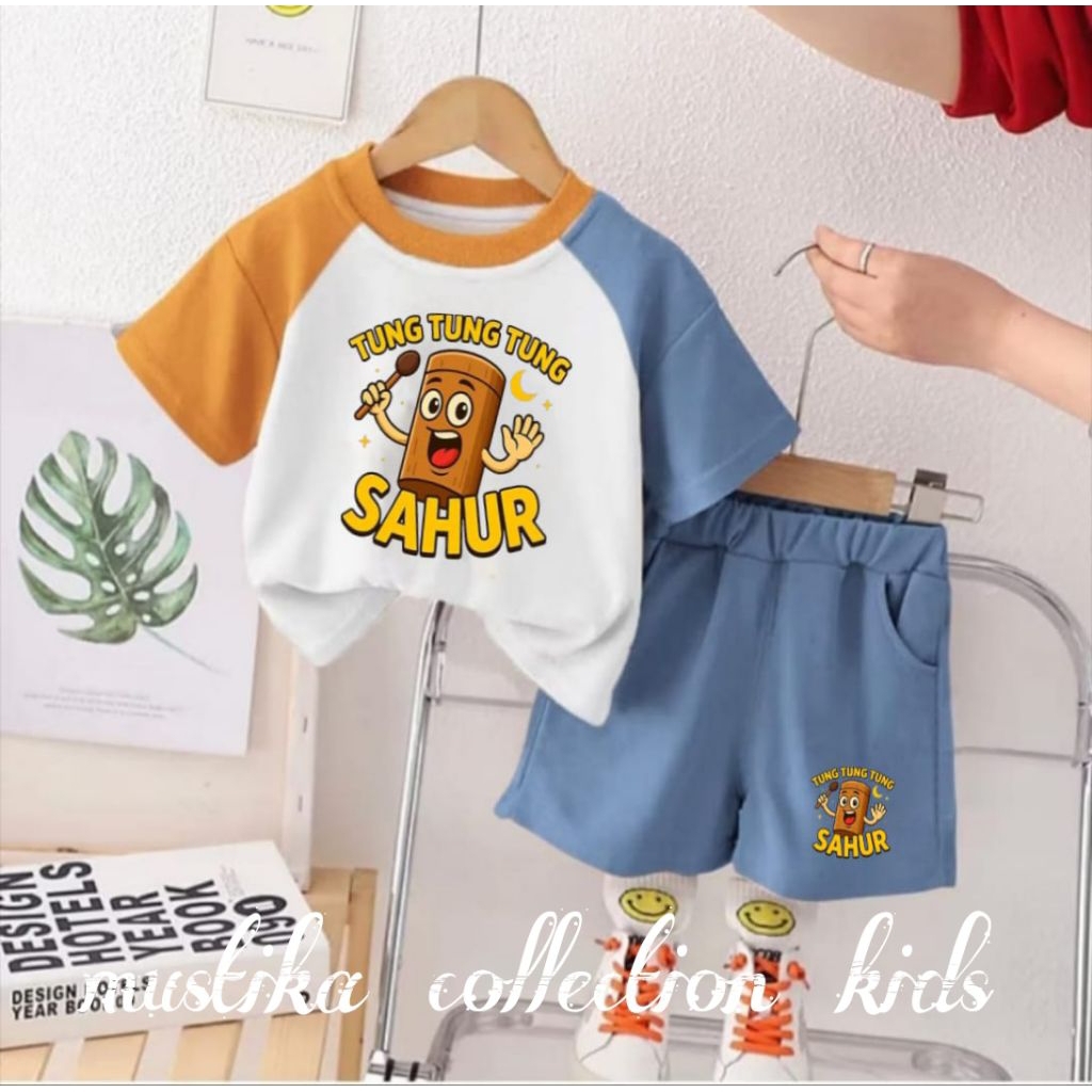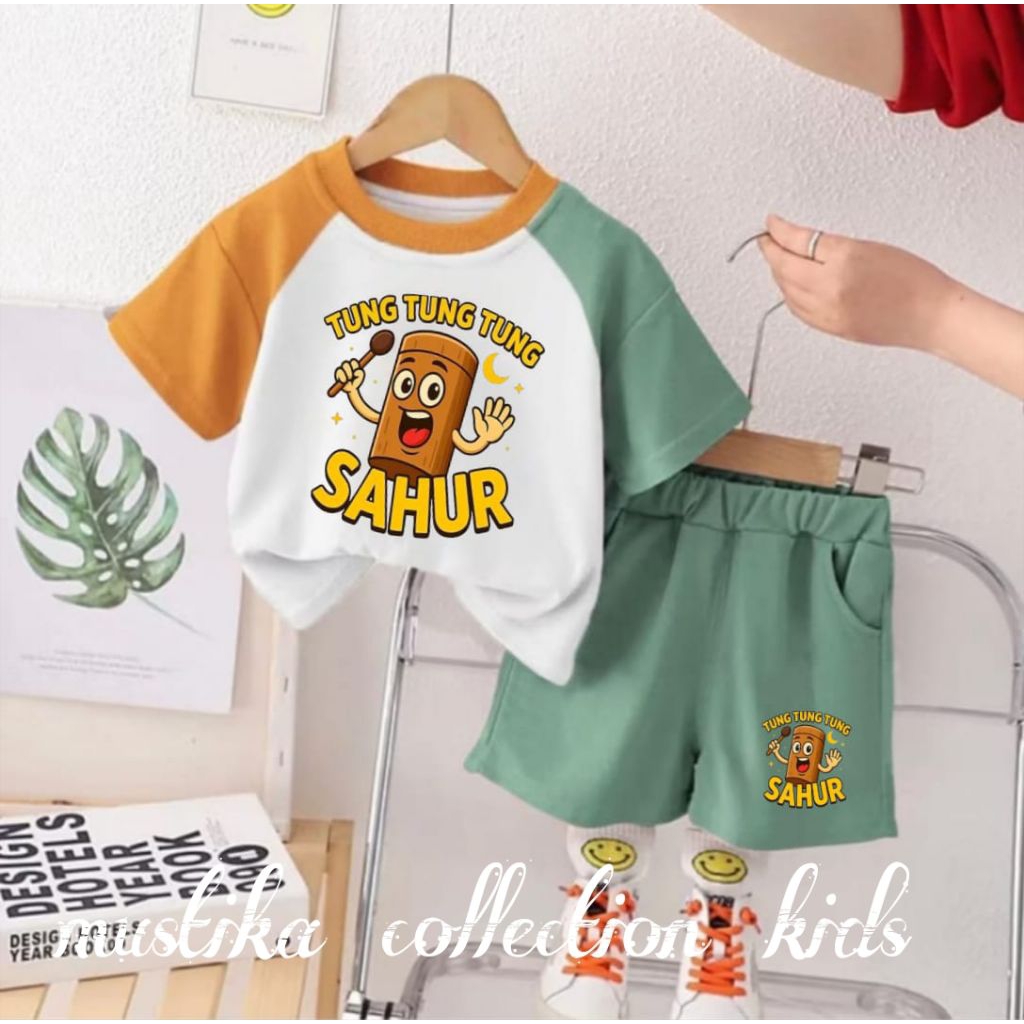 setelan kaos celana anak VIRAL MOTIF TER BARU ANOMALI TUNG-TUNG SAHUR REGLAN usia 1-5tahun