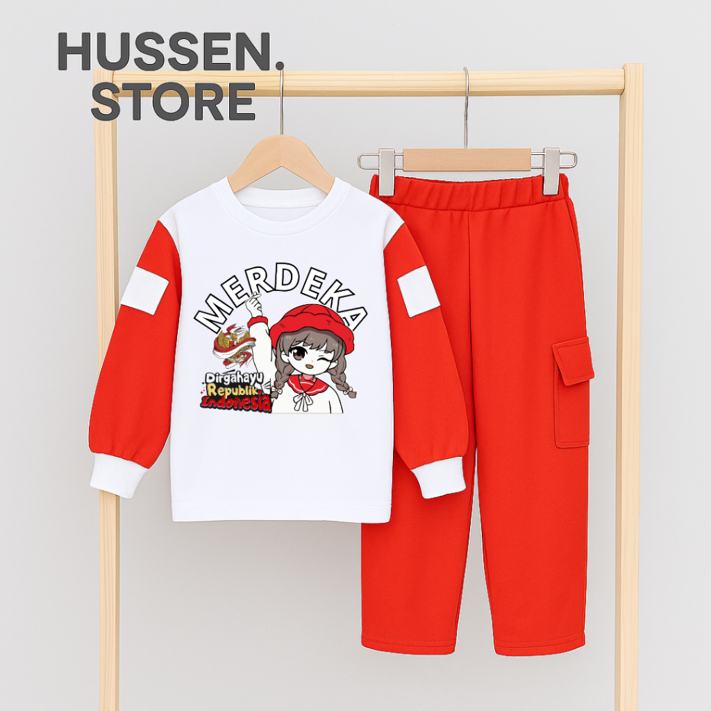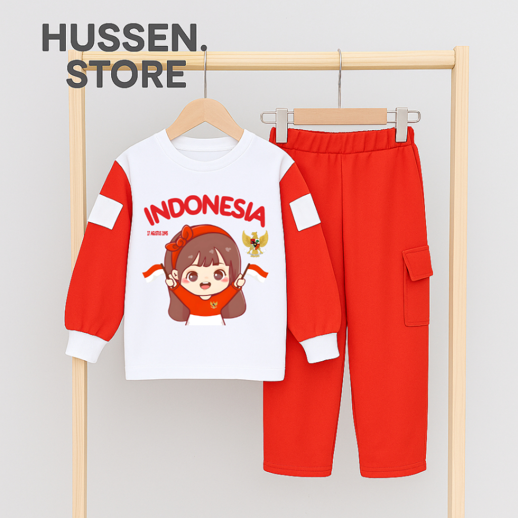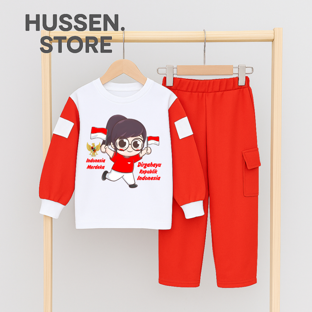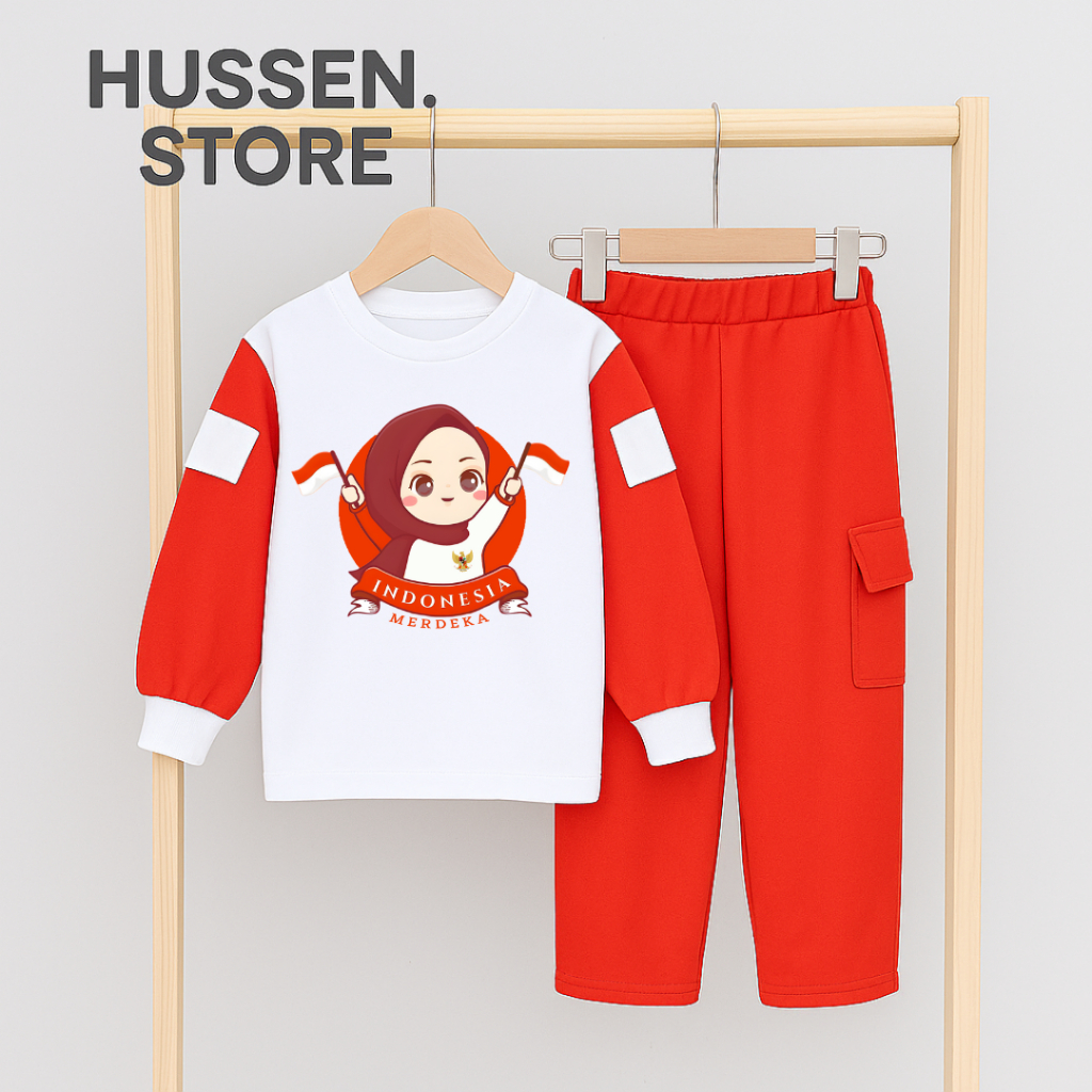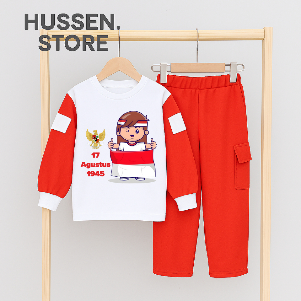 Setelan Anak Perempuan Kemerdekaan Agustusan One Set Cargo Independent Day Terlaris Untuk Umur 4-13 Tahun