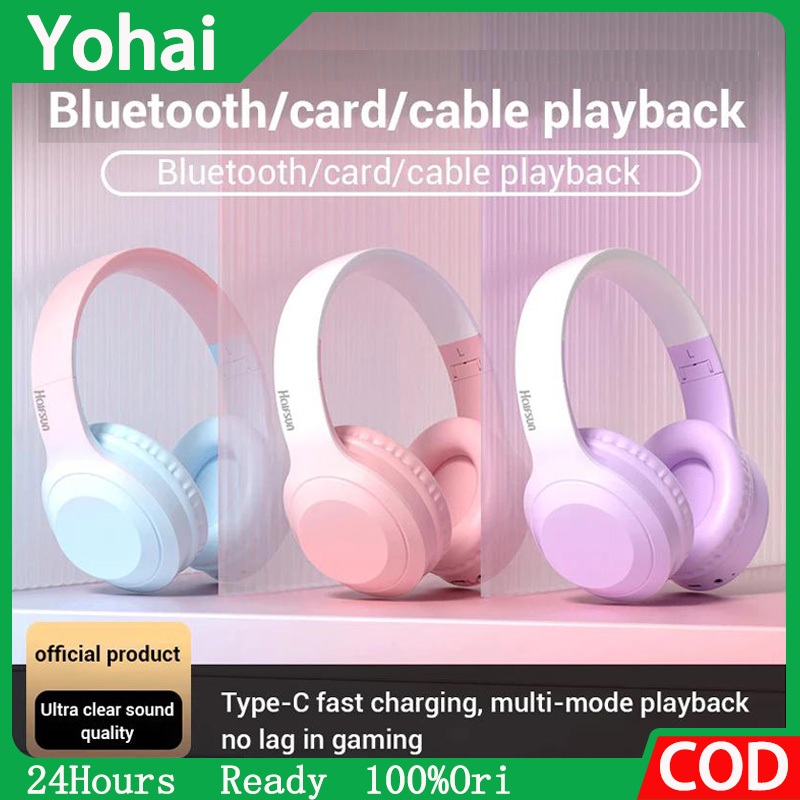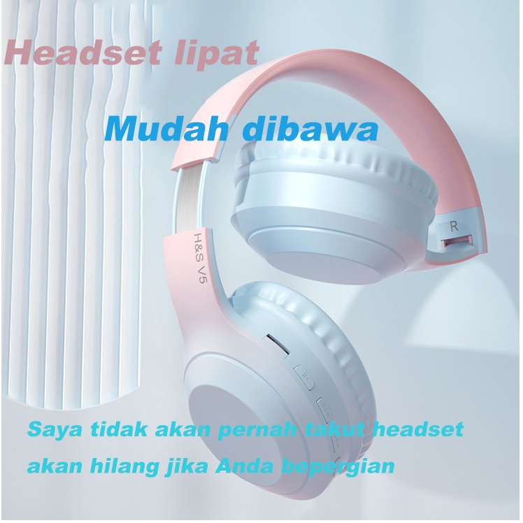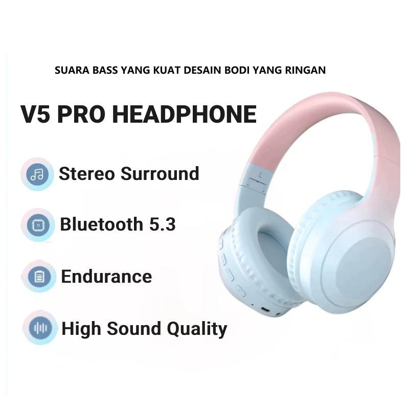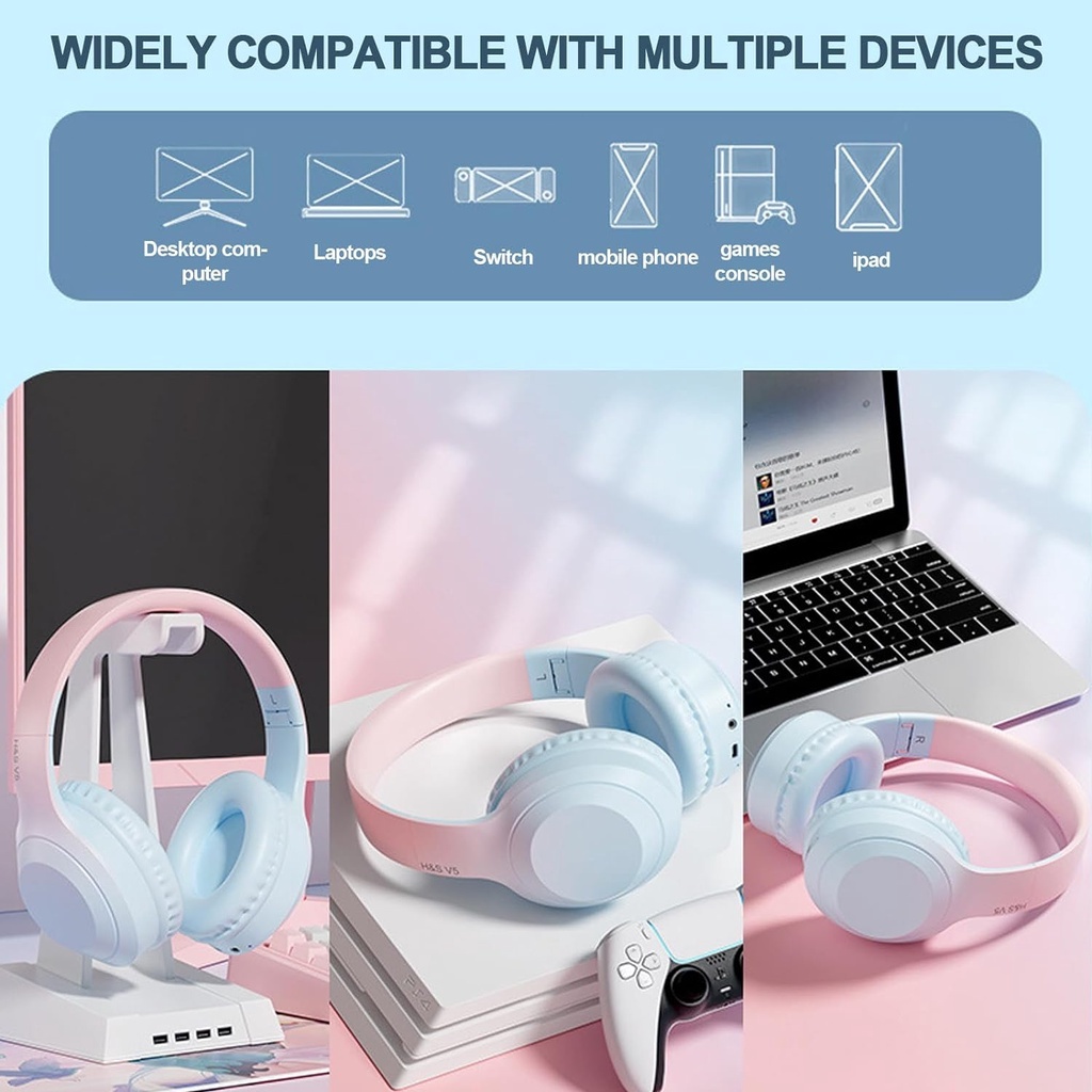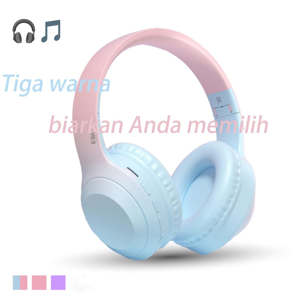 V5-S Headphone Bluetooth 5.3 HIFI Bass Wireless Gaming Headset With Microphone Over Ear Earphone Gradient Color