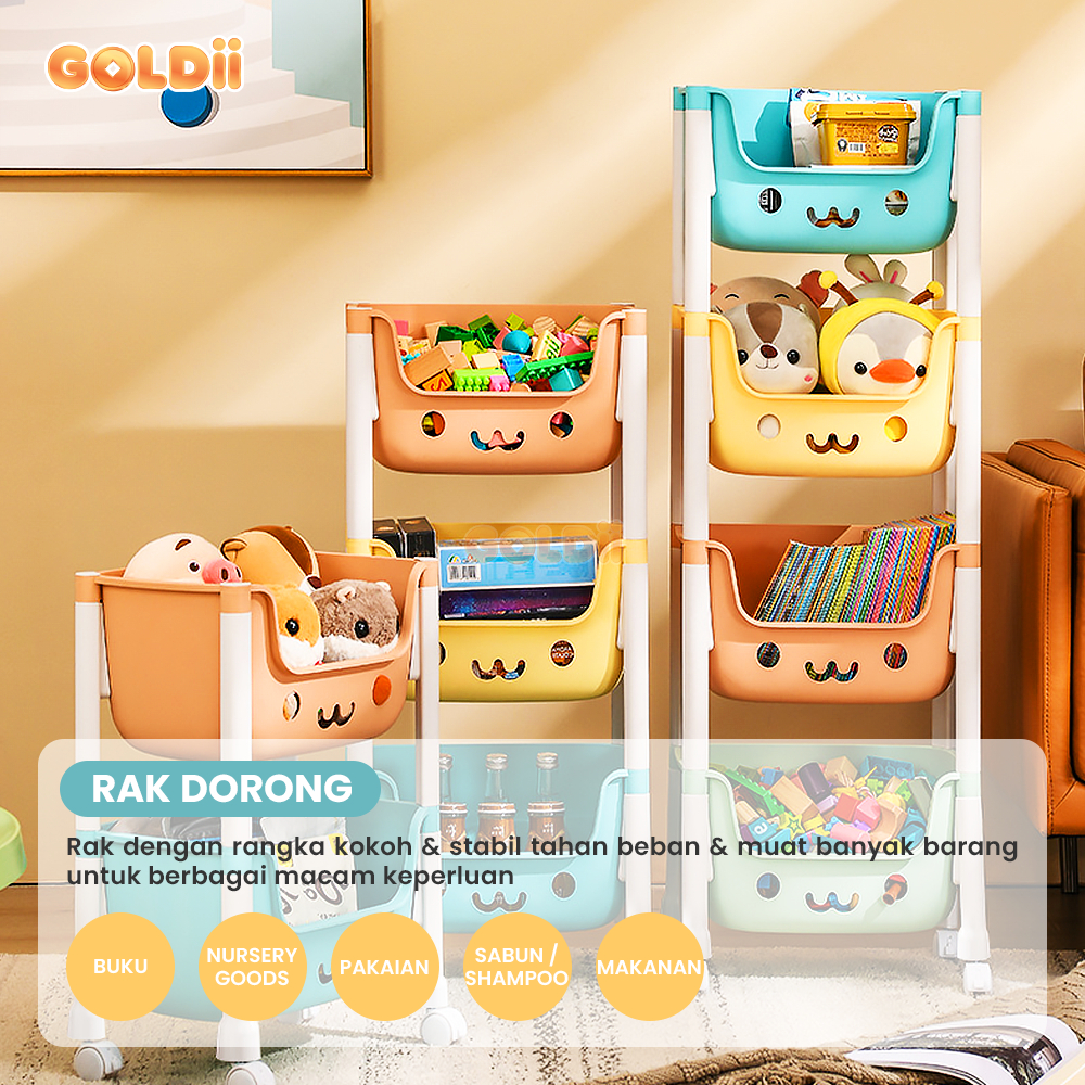 RAK MAINAN ANAK 2/3/4 TINGKAT DENGAN RODA RAK TROLI PLASTIK