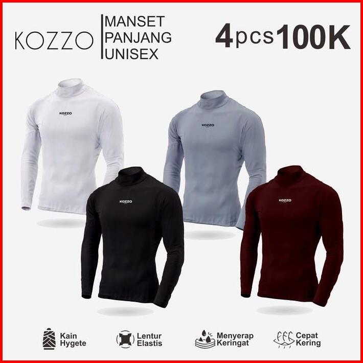 Paket 4 Pcs Kaos Manset Olahraga Lengan Panjang Tanpa Lubang Jempol Baselayer Kozzo Sport Abu