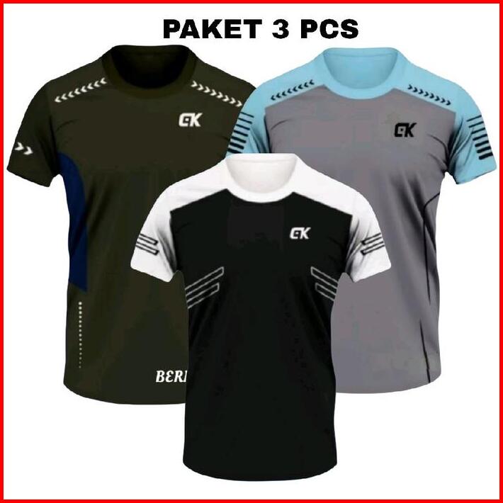 Paket 3 Pcs Baju Olahraga Pria Dr-yfit Lengan Pendek Baju Gym Slimfit Kaos Sport Running Badminton Volly Sizs L Xl Xxl