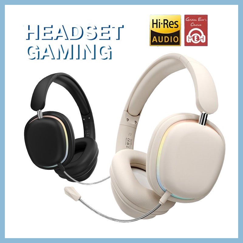 Headset Gaming Bluetooth 5.3 Wireless Headphone RGB Light With Noise Canceling Mic Earphone