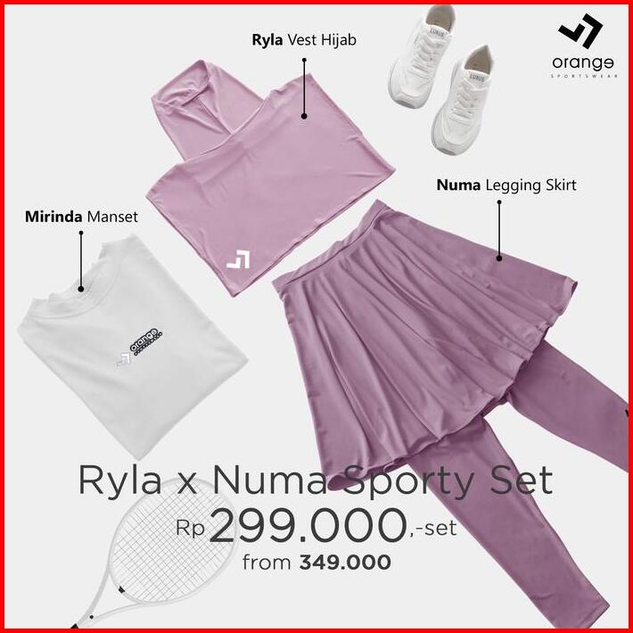 Oneset Rompi Hijab Legging Rok Wanita Jogging Gym Sepeda Ryla X Numa Sporty Set