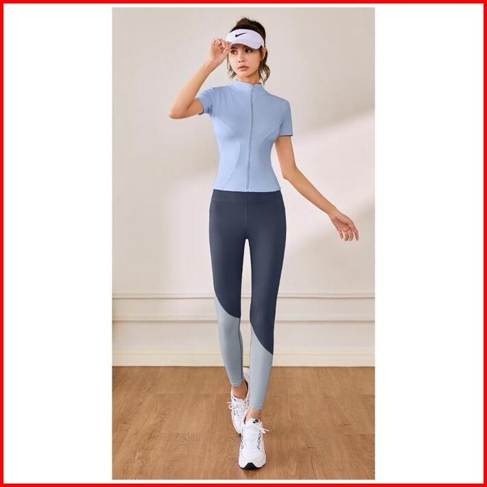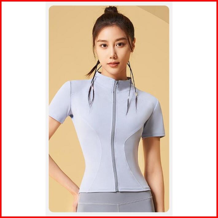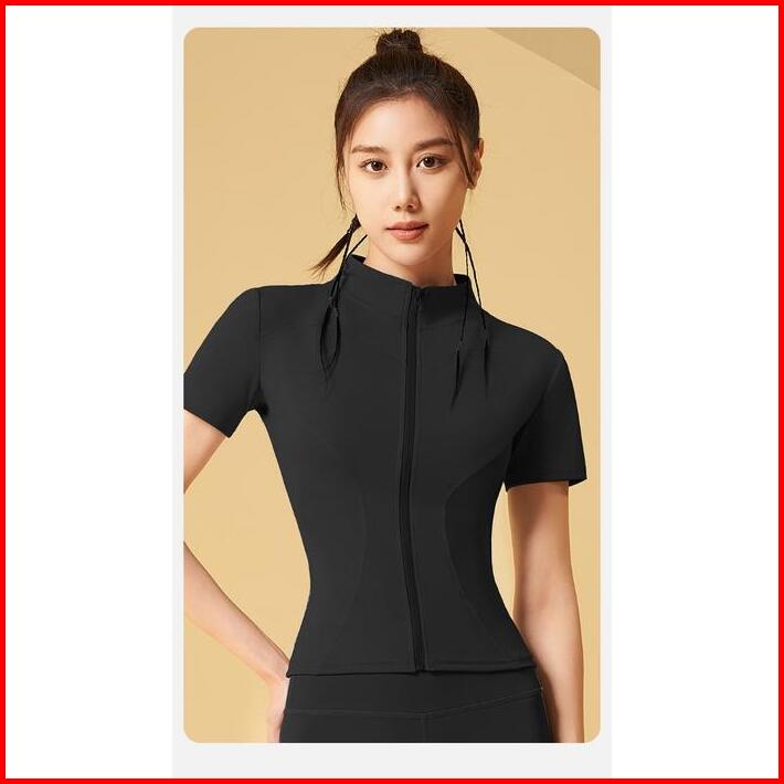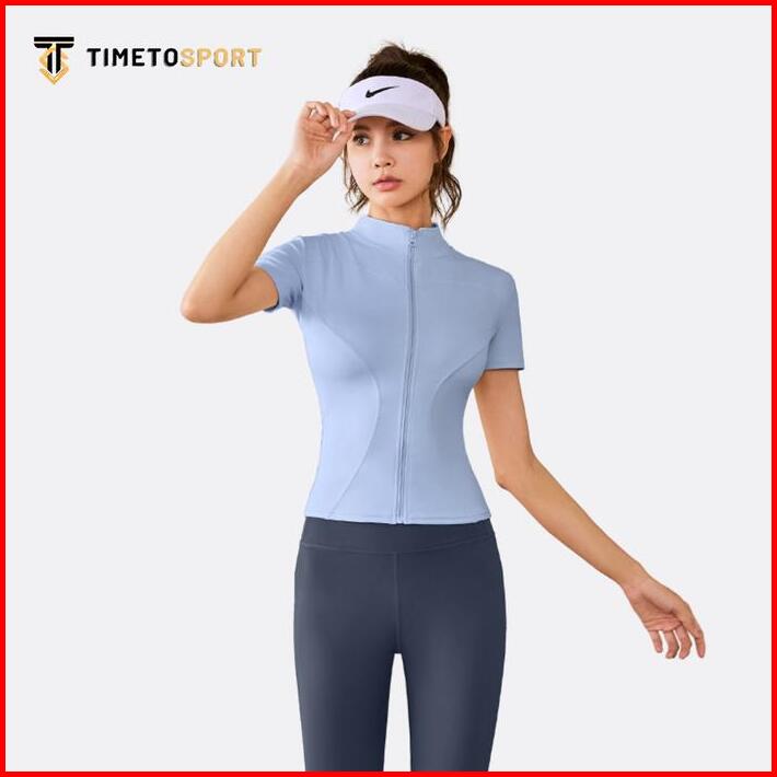 Timetosport Atasan Olahraga Wanita Dry Fit Zipper Lengan Pendek Kebugaran Yoga Aerobik 1170