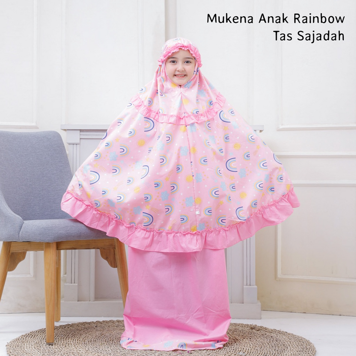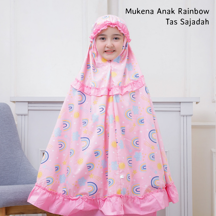 Mukena Anak Rainbow Pink Tas Sajadah Murah Kekinian