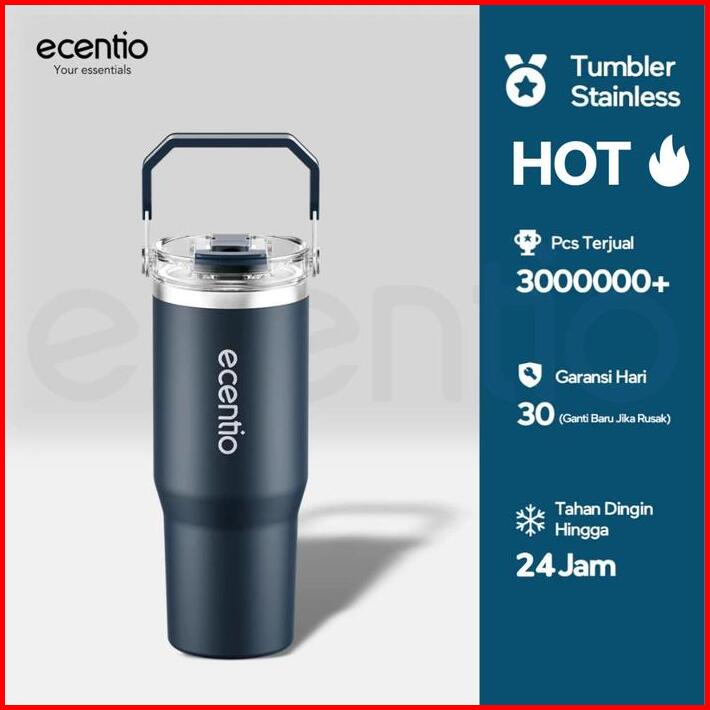 Ecentio Tumbler Panas Dingin Tumbler Minum Stainless 900ml Premium Botol Minum Aesthetic Besar