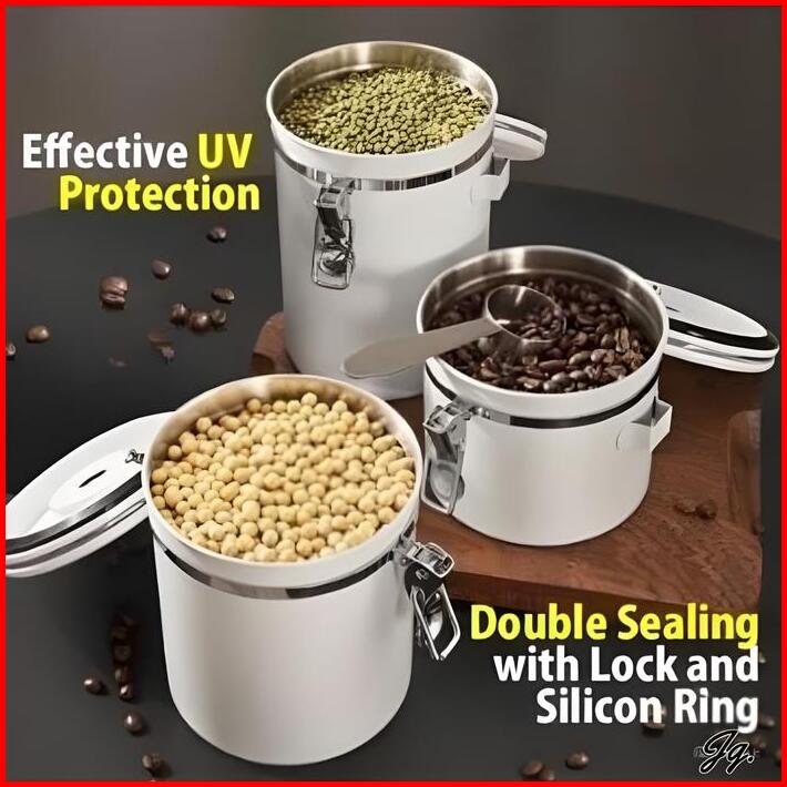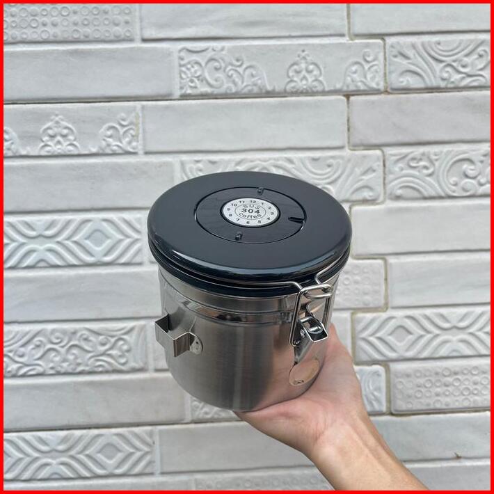 Coffee Canister Stainless Storage Toples Tempat Menyimpan Kopi Kedap Udara Free Sendok Coffee Storage With Valve Date Sp