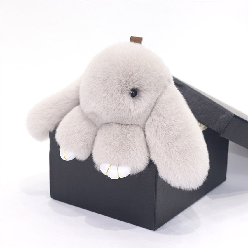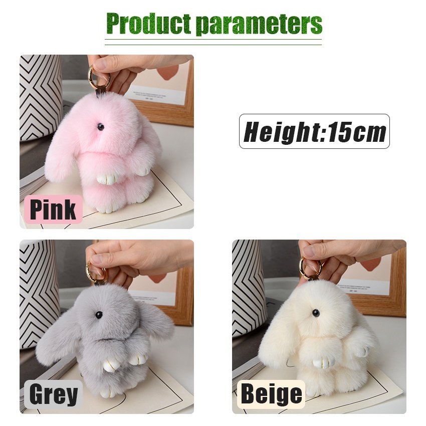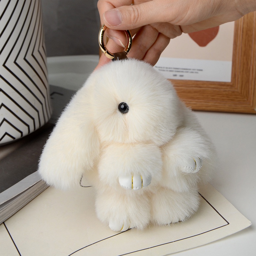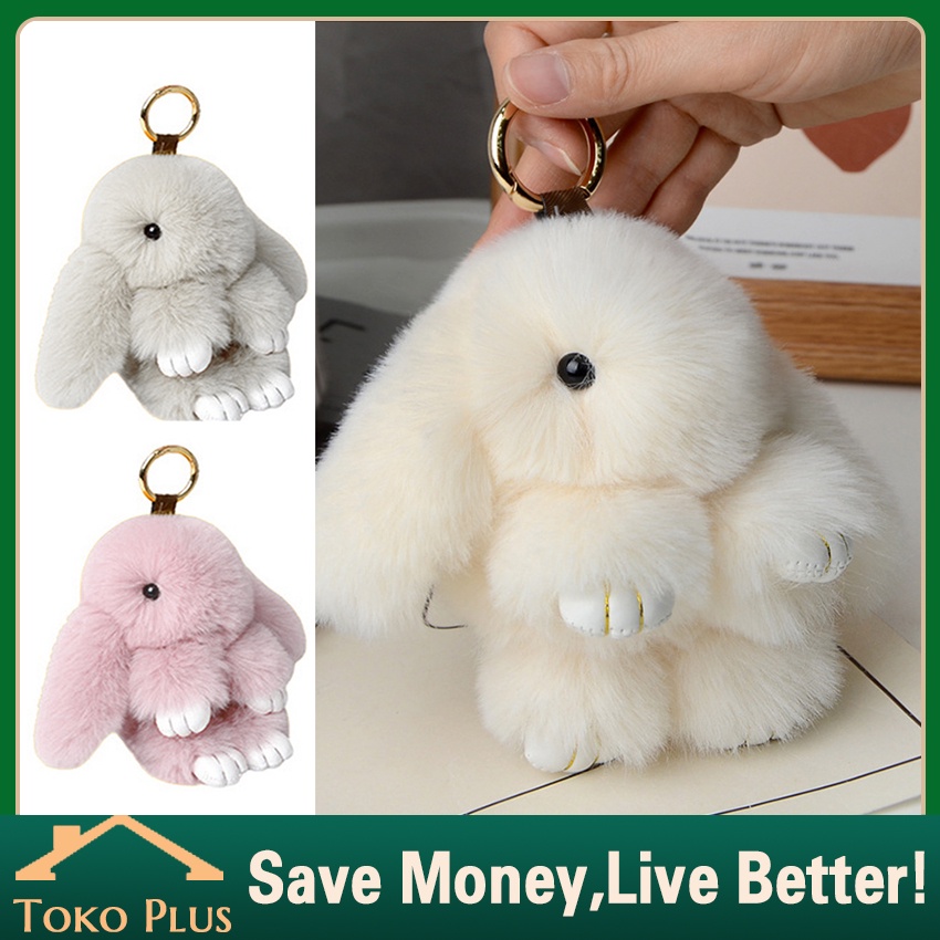 Gantungan Kunci kelinci Bulu Pom Pom Rabbit Keychain Ring Fluffy Bulu Pompon Bunny Trinket Key Chain Charm Gantungan Kun
