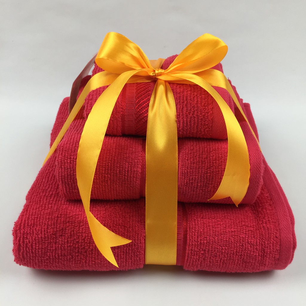 Paket 3 Pcs - Terry Palmer Merah Putih Handuk Dewasa (30x100 + 50x100 + 70x135) Lembut - Menyerap