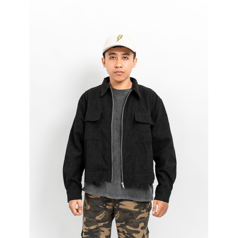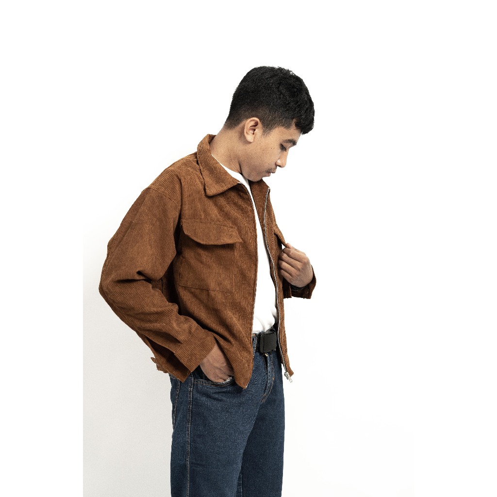 Boxy Work Jacket Corduroy Pria Retro Nyaman