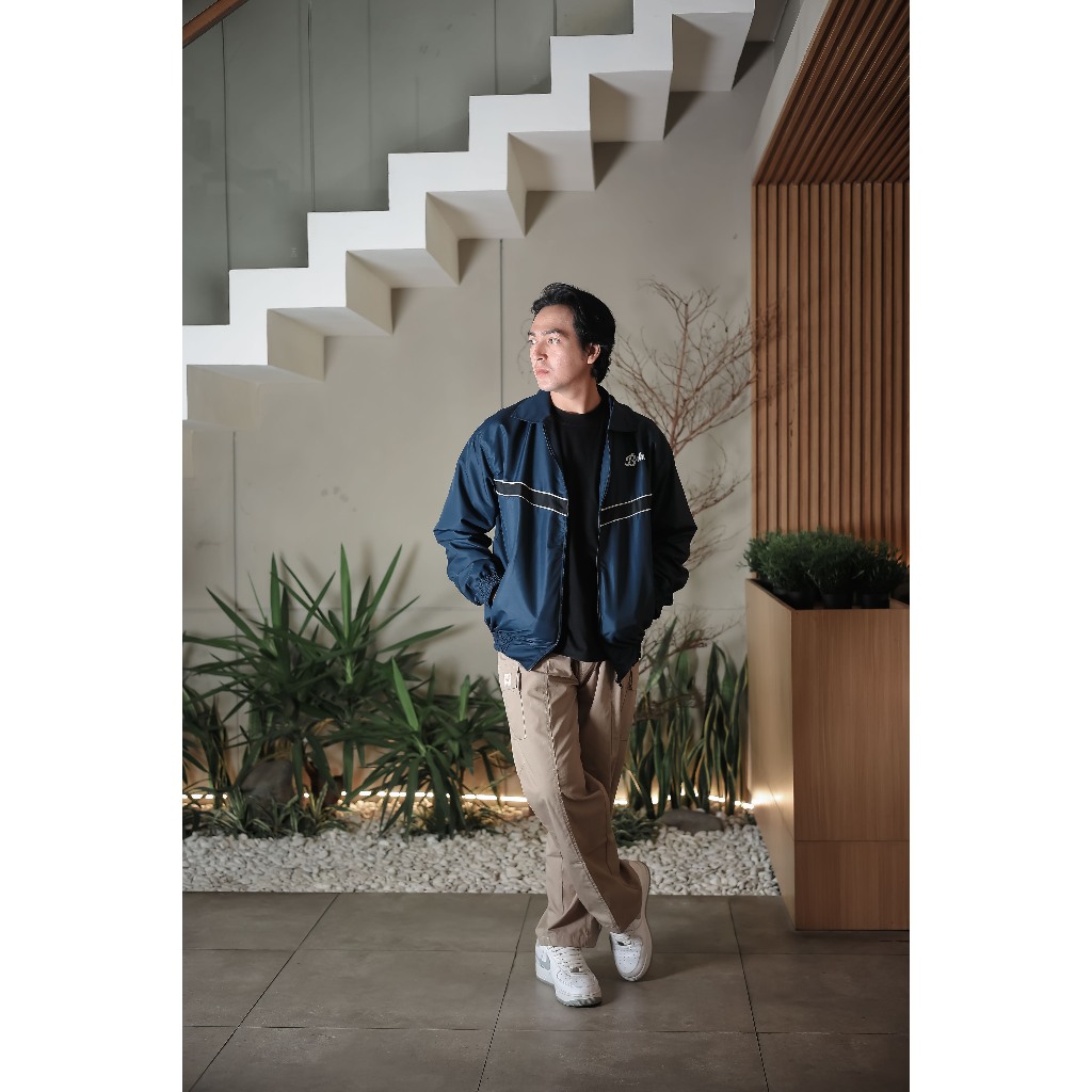 Barhaws - Jacket Tracksuit Vintage Bahan Taslan Windproof Outer Pria Wanita Warna Navy