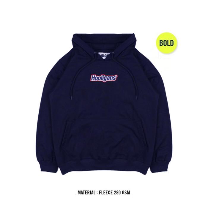 HOOLIGANS Hoodie Bold Italic Layer Navy Fleece Hitam Pria