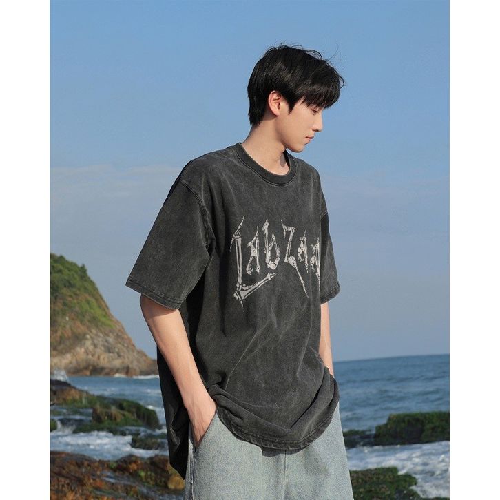 TERBARU [] baju trend Washed Kaos Pria American retro skull Baju Oversize Pria Street Style T-shirt Atasan