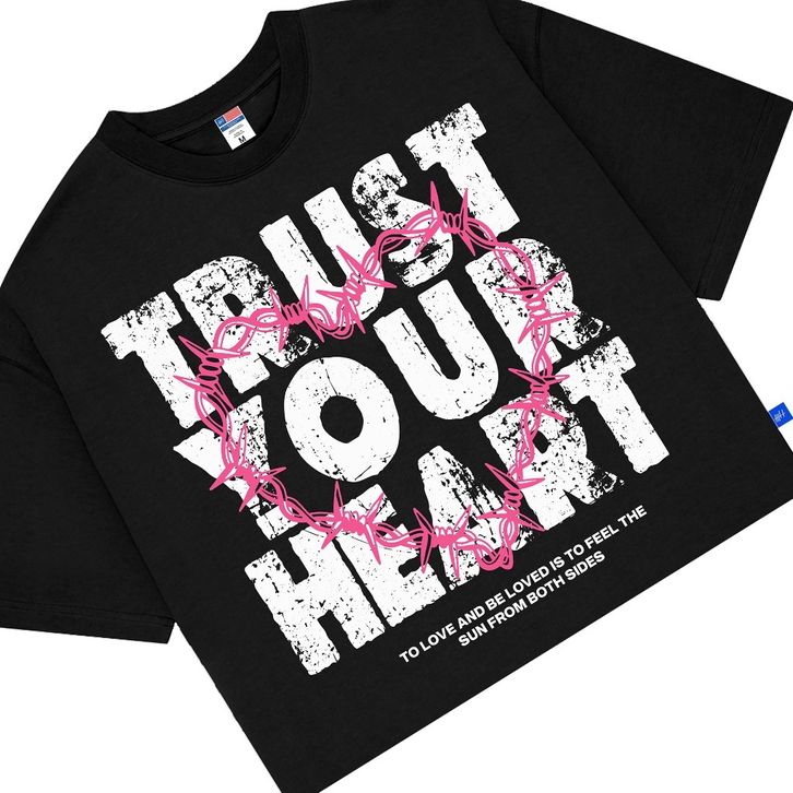 MURAH Hits Tshirt baju boxy pria Crop Boxy Oversize Trust Your Heart Kaos Hitam Pria Wanita kaos T modis enehl