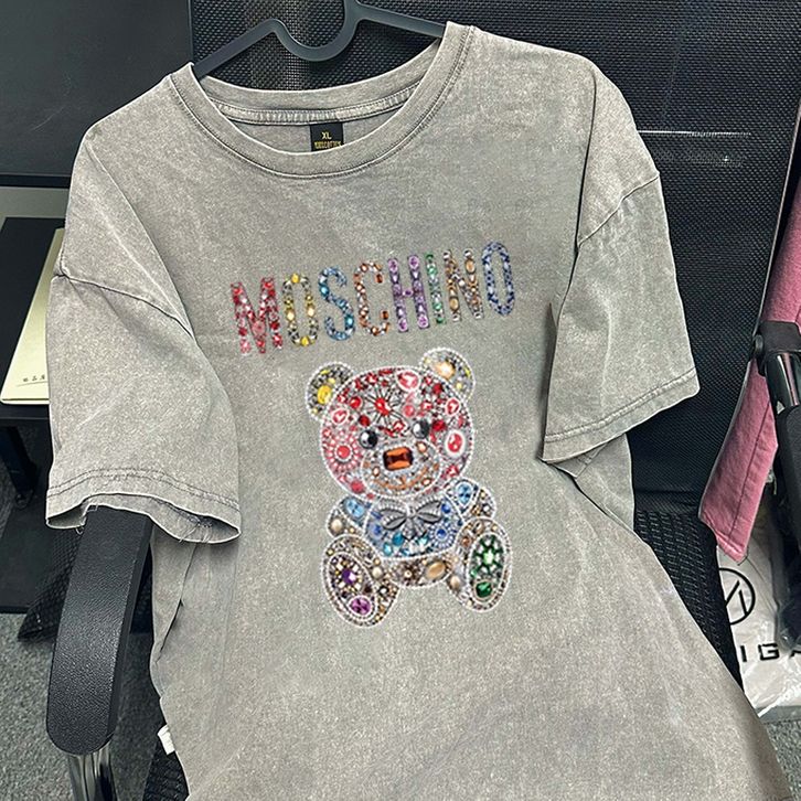 PREMIUM BOOMBAP American retro Style T-shirt Oversize Korean MOSCHINO Diamond Bear Print top| Kaos Wanita Hitam |